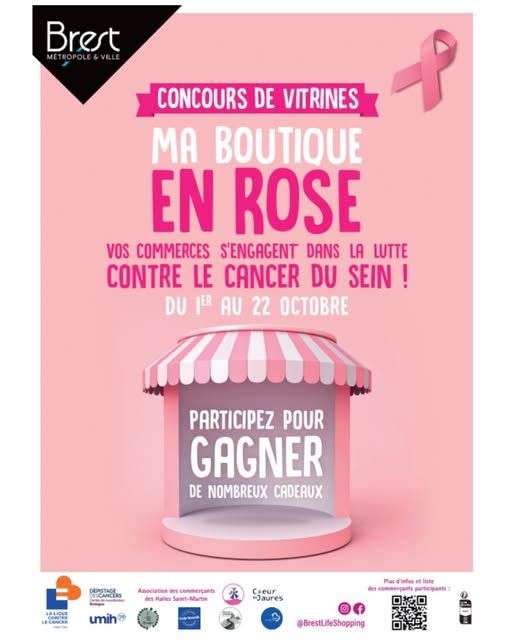 En partenariat avec la Ligue contre le cancer et le Centre Régional de Coordination des Dépistages des Cancers Bretagne (CRCDC), Brest métropole et la Ville de Brest se mobilisent contre le cancer du sein en lançant un concours de vitrines à destination des commerçants et artisans du territoire.